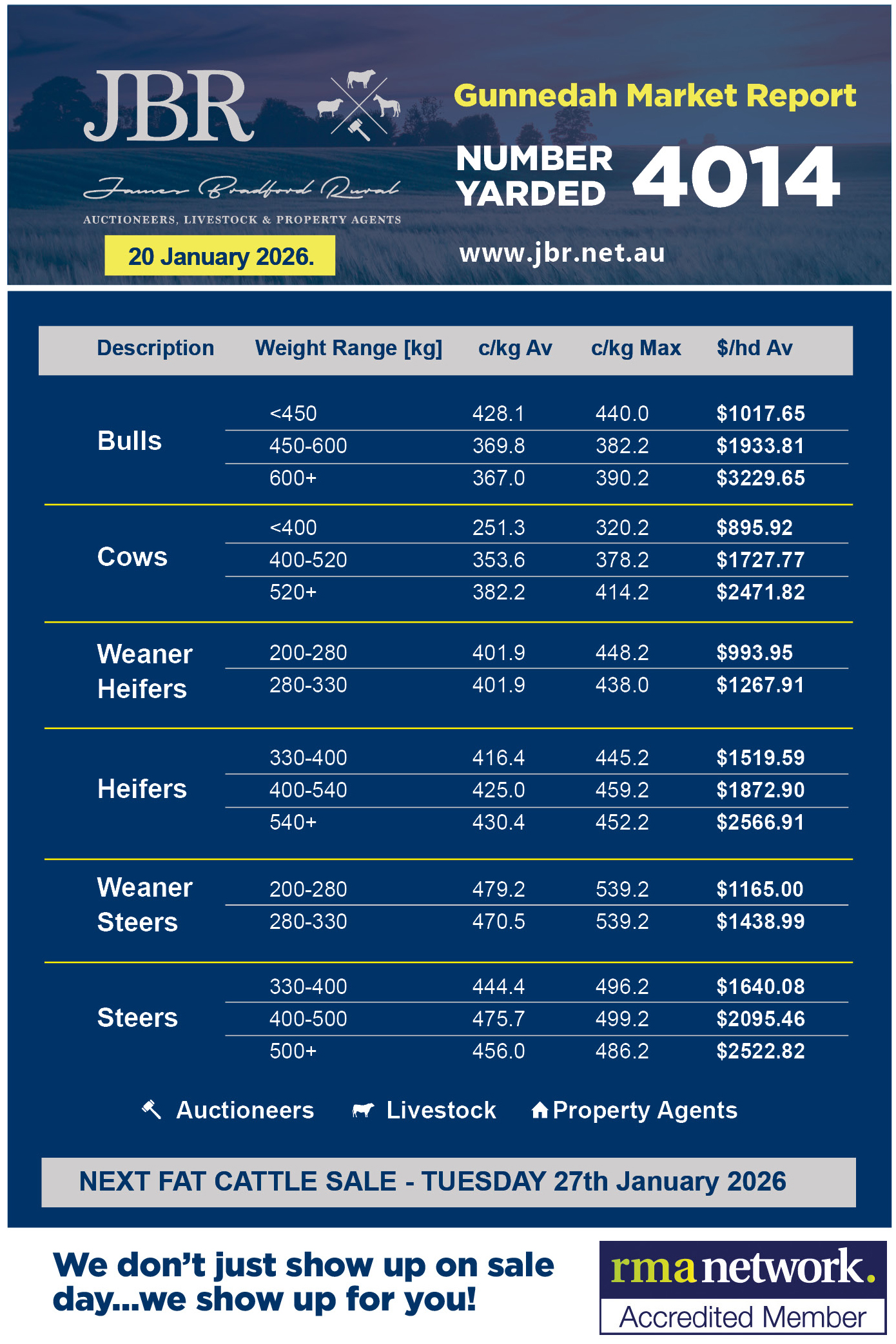 Gunnedah Cattle Sales Weekly Report 20th January 2026